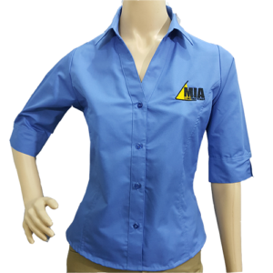 Blusa estilo clásico cuello tipo V, manga corta o manga 3/4  con un logotipo bordado de su empresa, telas de linea y alta calidad, confección de primera, doble costura, fabricada con maquinas industriales para mayor resistencia y durabilidad.
