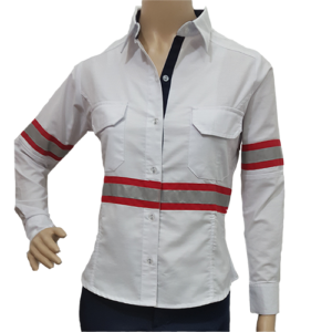 Blusa estilo columbia manga larga a un color, charretera, cola de raton, abertura en espalda con calada, doble bolsa con tapadera con cintas reflectivas para noche reflectivo 3M original y telas para dia, botón en el cuello, con un logotipo bordado de su empresa, telas de linea y alta calidad, confección de primera, doble costura, fabricada con maquinas industriales para mayor resistencia y durabilidad.