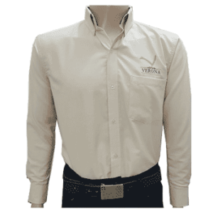 Camisa estilo clásico a un color, manga larga, botón en el cuello, con un logotipo bordado de su empresa, telas de linea y alta calidad, confección de primera, doble costura, fabricada con maquinas industriales para mayor resistencia y durabilidad.