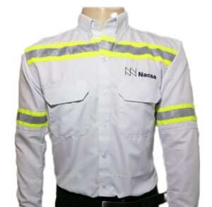 Camisa estilo columbia a un color, manga larga, tela colombina, con dos bolsas con tapadera, respirador en la espalda con tela calada, charreteras, cola de raton con cintas reflectivas para noche reflectivo 3M original y telas para dia, botón en el cuello, con un logotipo bordado de su empresa, telas de linea y alta calidad, confección de primera, doble costura, fabricada con maquinas industriales para mayor resistencia y durabilidad.