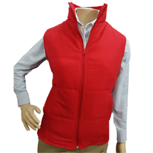 Chaleco enguatado para dama, tela microfibra dos bolsas laterales duradero con un bordado pequeño.