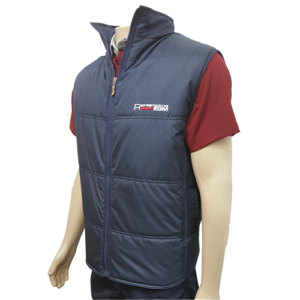 Chaleco enguatado para caballero en tela microfibra con dos bolsas laterales duradero con un bordado pequeño.