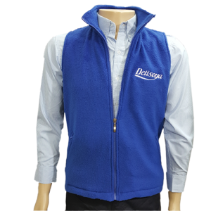 Chaleco clasico en tela pochito, dos bolsas laterales duraderos con un bordado pequeño.