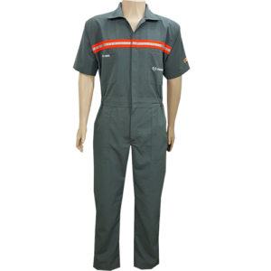 Overol estilo clásico manga corta a un color con cierre de boton, cintas reflectivas con un logotipo bordado de su empresa, telas de linea y alta calidad, confección de primera, doble costura, fabricada con maquinas industriales para mayor resistencia y durabilidad.