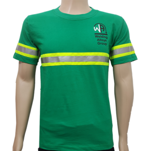 Playeras tela 100% hilo 20 a un color, manga corta, con cintas reflectivas, con una serigrafia pequeña de un color en pecho y una serigrafia grande de un color en espalda, telas de linea y alta calidad, confección de primera, doble costura, fabricada con maquinas industriales para mayor resistencia y durabilidad.